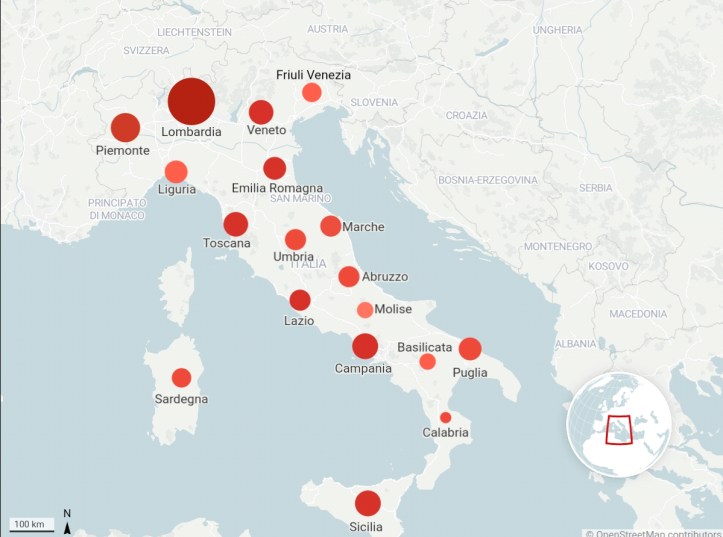 Gli ultimi dati sul Coronavirus e la mappa interattiva con dati forniti dalla Protezione Civile.