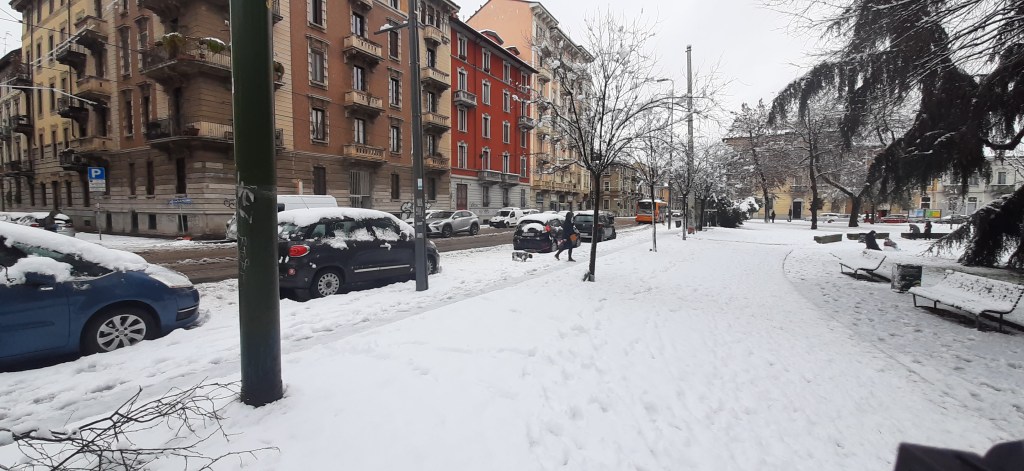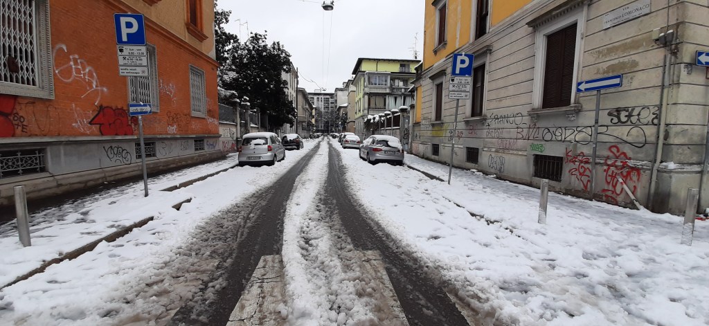 A Milano si è abbattuta questa notte una forte nevicata. Sono caduti circa 20 cm di neve in meno di 10 ore. A mezzanotte sono entrati in servizio gli spazzaneve comunali che hanno sparso sale sulle strade per evitare incidenti.